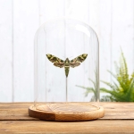 A stunning Army Green moth (Daphnis nerii), in a handmade glass dome with your choice of brown or black wooden base. All of our domes / bell jars are handmade with quality in mind in the UK meaning we have full control over the process.