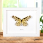 A Stunning Electra's tree-nymph butterfly in a handmade wooden frame mounted on high-quality acid-free conservation board. The Latin and common names are printed underneath the specimen.