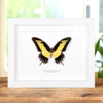 A beautiful Androgeus Swallowtail butterfly in a handmade wooden frame mounted on high-quality acid-free conservation board. The Latin and common names are printed underneath the specimen.