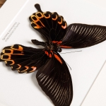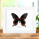 A beautiful Swallowtail butterfly Ventral Side in a handmade wooden frame mounted on high-quality acid-free conservation board. The Latin and common names are printed underneath the specimen.