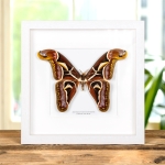 Archaeoattacus edwardsii in a handmade wooden frame mounted on high-quality acid-free conservation board. The Latin and common names are printed underneath the specimen.