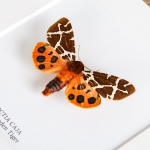 A stunning Garden Tiger moth in a handmade wooden frame mounted underside on high-quality acid-free conservation board. The Latin and common names are printed underneath the specimen.