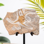 A fossilised Brittle Starfish on matrix displayed on a fabricated steel stand. Handmade by our Hertfordshire blacksmiths.