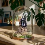 A massive Atlas beetle still life scene in a handmade glass dome with wooden base.