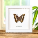 A Black-bordered Charaxes Ventral Side in a handmade wooden frame mounted on high-quality acid-free conservation board. The Latin and common names are printed underneath the specimen.