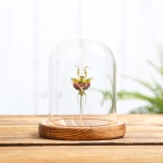 A glorious Jewelled Flower Mantis (Creobroter gemmatus), in a handmade glass dome with your choice of brown or black wooden base. All of our domes / bell jars are handmade with precision in the UK meaning we have full control over the process.