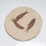 A stunning triple freshwater herring fossil in a handmade wooden frame mounted on high-quality backing board. Common and Latin names are printed underneath.