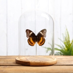 A Eight-spot Diadem in a handmade glass dome with your choice of brown or black wooden base. All of our domes / bell jars are handmade with fine detail in the UK meaning we have full control over the process.