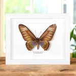 A beautiful Palawan Birdwing butterfly in a handmade wooden frame mounted on high-quality acid-free conservation board. The Latin and common names are printed underneath the specimen.