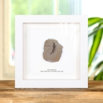 A Dawn Redwood Plant Fossil in a handmade wooden frame mounted on high-quality acid-free conservation board. The Latin and common names are printed underneath the specimen.