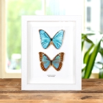 Aurora Morpho Butterfly Male & Female Pair In Box Frame
