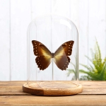 A Hercules Morpho In a glass dome with hand-made wooden base.