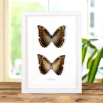 Golden Morpho Butterfly Male & Female Pair In Box Frame