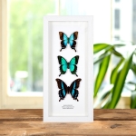 Papilio lorquinianus, also known as the Sea Green Swallowtail is a butterfly from the family Papilionidae that can be found in the Maluku Islands in Indonesia. This specimen has a close resemblance to the Papilio Blumei however this butterfly is much smaller and more vibrant.