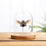 A Silver Scarab Beetle in a handmade glass dome with your choice of brown or black wooden base. All of our domes / bell jars are handmade with fine detail in the UK meaning we have full control over the process.